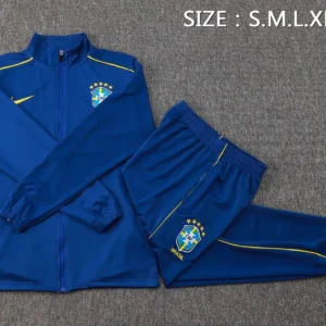 A816# 2425 Full-Zip Football Jacket Kit (Top+Pants) Brazil Royal Blue (Yellow Trim)