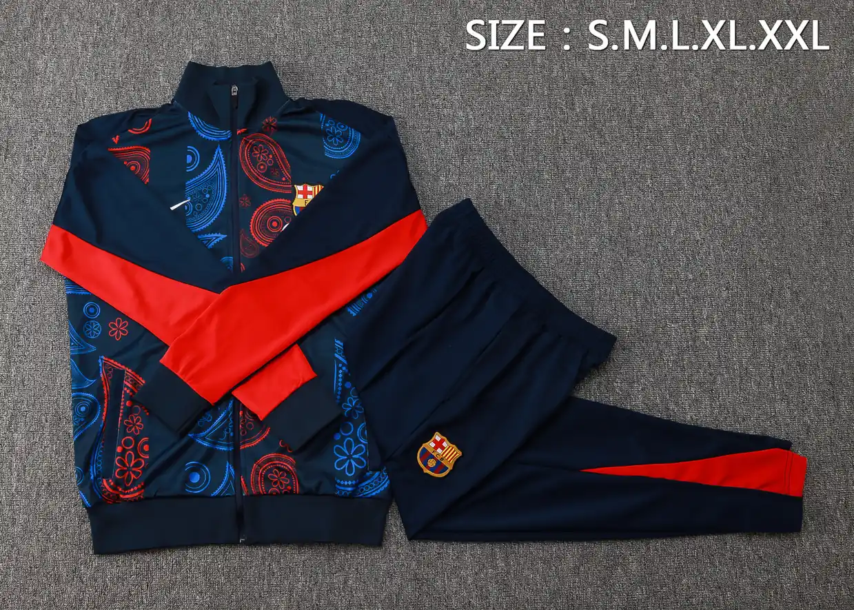 A841# 2425 Full-Zip Football Jacket Kit (Top+Pants) Barcelona Royal Blue Ink Edition (Geometric Pattern)