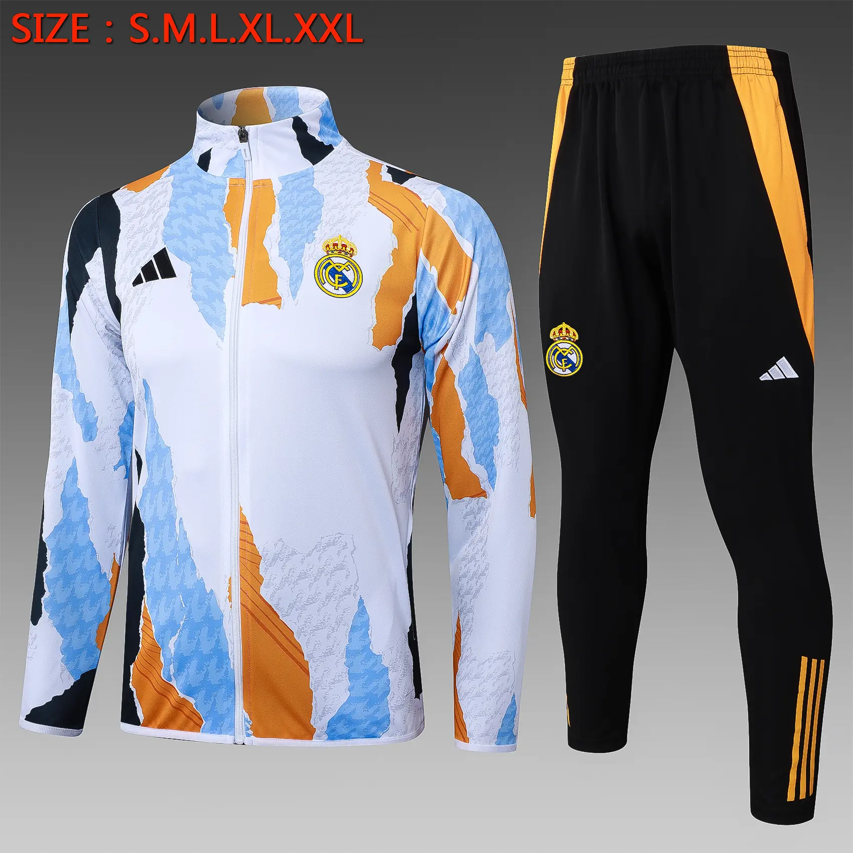 A848# 2425 Full-Zip Football Jacket Kit (Top+Pants) Real Madrid Blue, White & Yellow Ink Edition